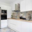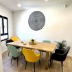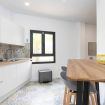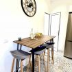 - Cocina independiente con todos los electrodomésticos: Frigorífico, horno, microondas, lavavajillas, placa de inducción, cafetera, hervidor eléctrico, tostadora y aspirador sin cable. Gran capacidad de almacenaje y gran luminosidad gracias a la ventana exterior y al patio de luz, donde se encuentran los accesorios de limpieza. También cuenta con una pequeña mesa de desayuno y cuatro taburetes.