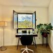 - Escritorio de trabajo con silla de ruedas delante de ventana exterior, muy luminoso y con excelentes vistas a la montaña.