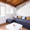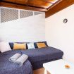-Gran terraza en la azotea con una zona descubierta con vistas al mar y muebles chill out, otra zona cubierta con sofás y otra zona con mesa y sillas donde comer o desayunar con parte de sol y de sombra.