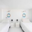 - Habitación doble con dos camas individuales, ventana, ropero, espejo y maravillosas vistas al mar.