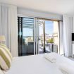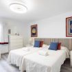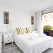 - Dormitorio doble con cama de matrimonio, televisión, ventilador, amplio armario, salida a la terraza vistas al mar y baño en suite.